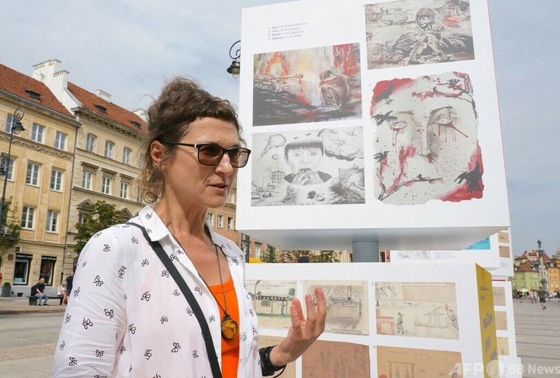 両国大使館の協力で実現した野外展覧会のキュレーター、ドロタ・サドウスカ(Dorota Sadowska)さんは「子どもたちが戦争をどう見ているか、何を感じて、何を伝えようとしているか、(中略)どの絵もとてもよく似ています」と語る。「そこに見えるのは、ただひたすら苦しみです」