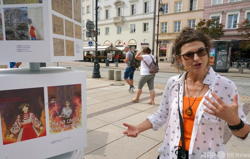 両国大使館の協力で実現した野外展覧会のキュレーター、ドロタ・サドウスカ(Dorota Sadowska)さんは「子どもたちが戦争をどう見ているか、何を感じて、何を伝えようとしているか、(中略)どの絵もとてもよく似ています」と語る。「そこに見えるのは、ただひたすら苦しみです」