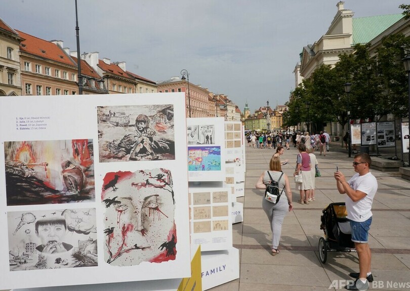 両国大使館の協力で実現した野外展覧会のキュレーター、ドロタ・サドウスカ(Dorota Sadowska)さんは「子どもたちが戦争をどう見ているか、何を感じて、何を伝えようとしているか、(中略)どの絵もとてもよく似ています」と語る。「そこに見えるのは、ただひたすら苦しみです」