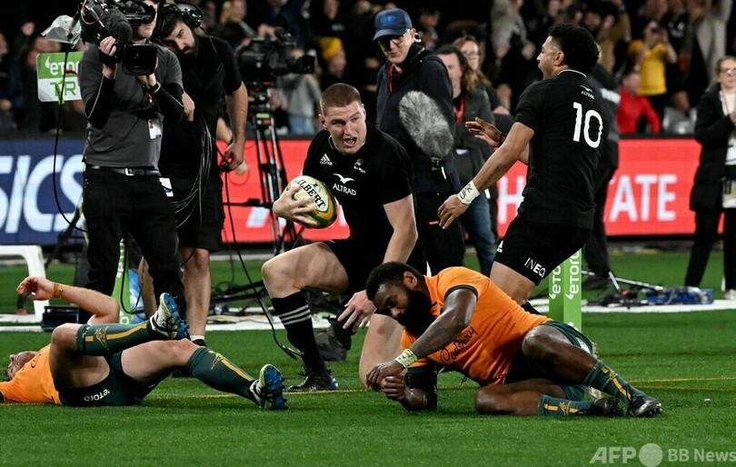 【9月16日 AFP】ラグビー南半球4か国対抗戦、ザ・ラグビーチャンピオンシップ(The Rugby Championship 2022)は15日、第5節が行われ、ニュージーランドはジョーディー・バレット(Jordie Barrett)の終了間際のトライでオーストラリアを39-37で下した。優勝に片手をかけたニュージーランドは、20年連続で「ブレディスローカップ(Bledisloe Cup)」の保持を決めた。