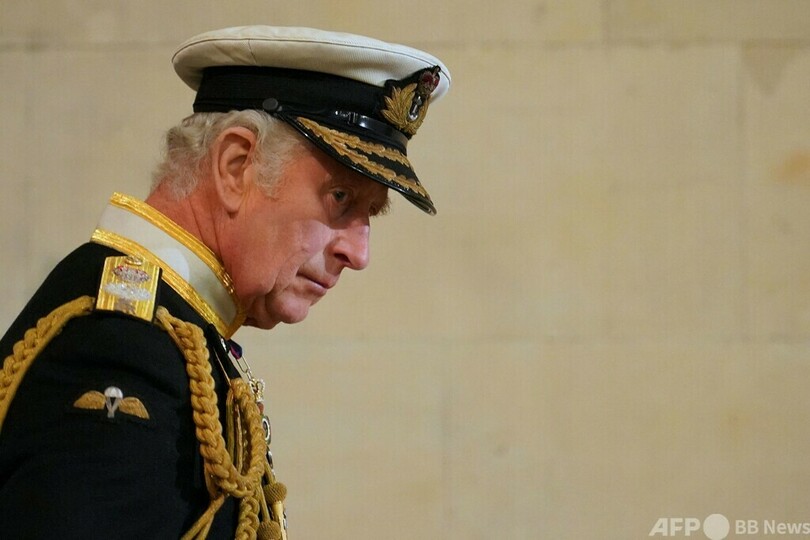 【9月17日 AFP】(写真追加)エリザベス英女王(Queen Elizabeth II)のひつぎが公開安置されている国会議事堂のウェストミンスターホール(Westminster Hall)で16日夜、長男で後継者のチャールズ国王(King Charles III)をはじめとする女王の子女4人が、ひつぎを囲む儀式を行った。