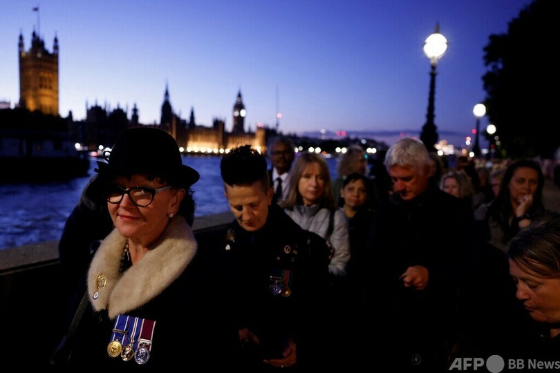 ひつぎが安置されている国会議事堂のウェストミンスターホール(Westminster Hall)には、海外からの訪問客を含む人々が多数訪れており、多くの人が夜通しで並んでいる。政府によると、同日には最後尾にある公園が満杯となったため、新たに並ぶ人の受け付けが1時間近く停止された。