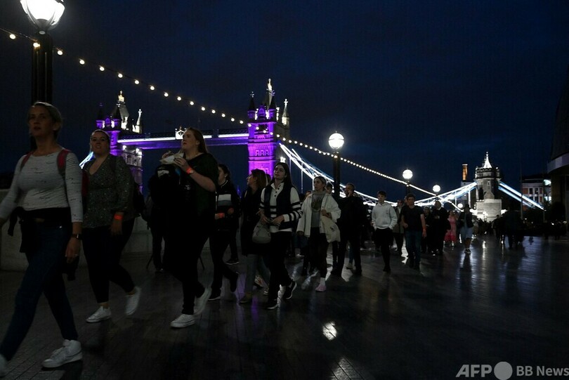 【9月17日 AFP】(写真追加)英首都ロンドンで行われているエリザベス女王(Queen Elizabeth II)のひつぎの公開安置で16日、弔問を希望する人々の列が最大24時間待ちの長さに達した。