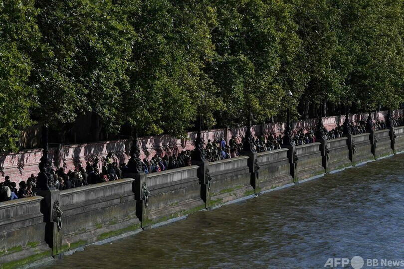 ひつぎが安置されている国会議事堂のウェストミンスターホール(Westminster Hall)には、海外からの訪問客を含む人々が多数訪れており、多くの人が夜通しで並んでいる。政府によると、同日には最後尾にある公園が満杯となったため、新たに並ぶ人の受け付けが1時間近く停止された。