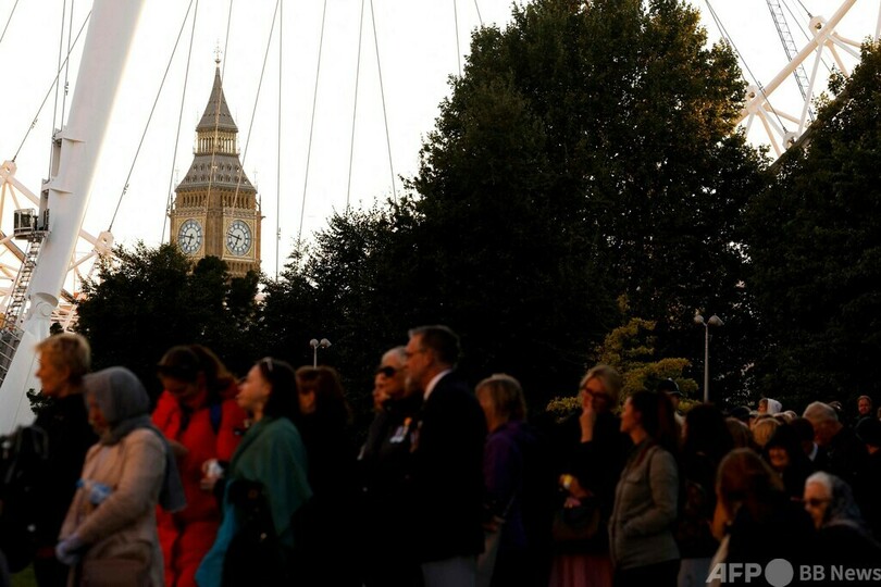 ひつぎが安置されている国会議事堂のウェストミンスターホール(Westminster Hall)には、海外からの訪問客を含む人々が多数訪れており、多くの人が夜通しで並んでいる。政府によると、同日には最後尾にある公園が満杯となったため、新たに並ぶ人の受け付けが1時間近く停止された。