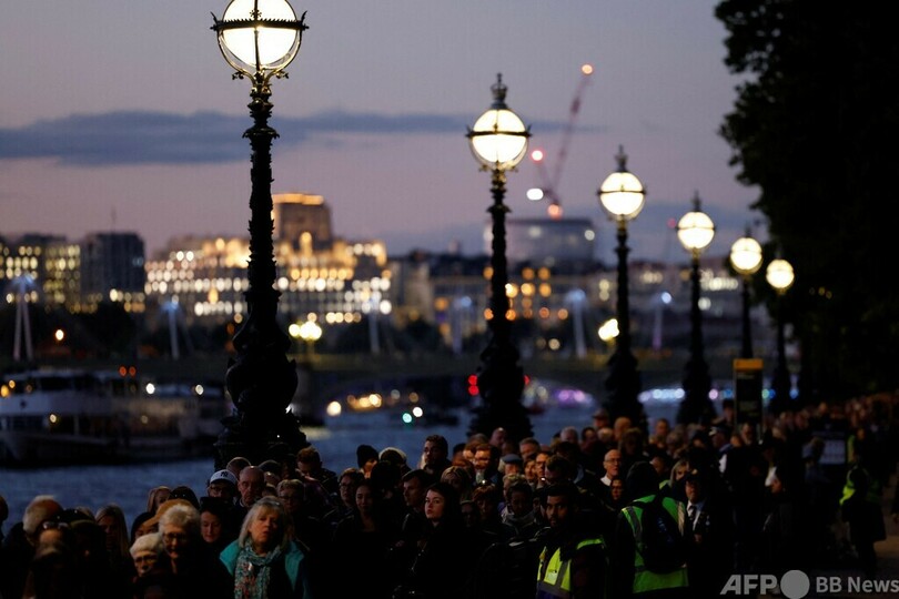 ひつぎが安置されている国会議事堂のウェストミンスターホール(Westminster Hall)には、海外からの訪問客を含む人々が多数訪れており、多くの人が夜通しで並んでいる。政府によると、同日には最後尾にある公園が満杯となったため、新たに並ぶ人の受け付けが1時間近く停止された。