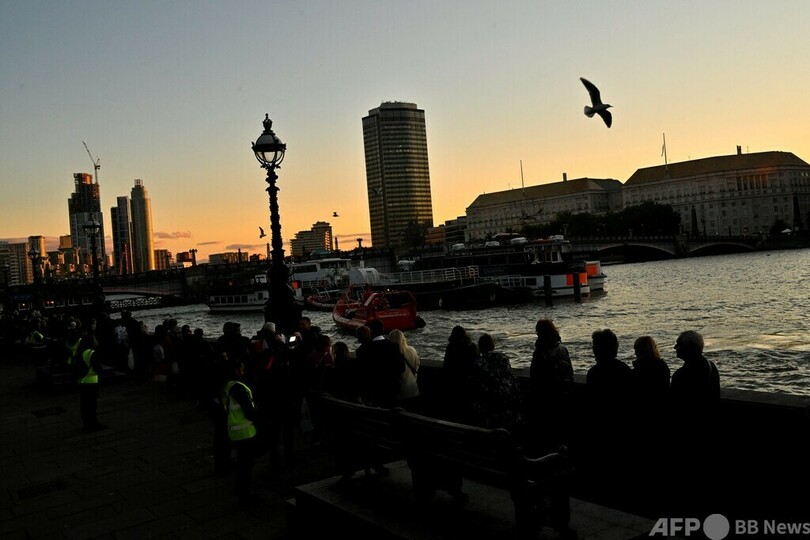 【9月17日 AFP】(写真追加)英首都ロンドンで行われているエリザベス女王(Queen Elizabeth II)のひつぎの公開安置で16日、弔問を希望する人々の列が最大24時間待ちの長さに達した。