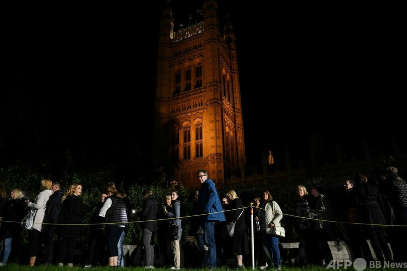 ひつぎが安置されている国会議事堂のウェストミンスターホール(Westminster Hall)には、海外からの訪問客を含む人々が多数訪れており、多くの人が夜通しで並んでいる。政府によると、同日には最後尾にある公園が満杯となったため、新たに並ぶ人の受け付けが1時間近く停止された。