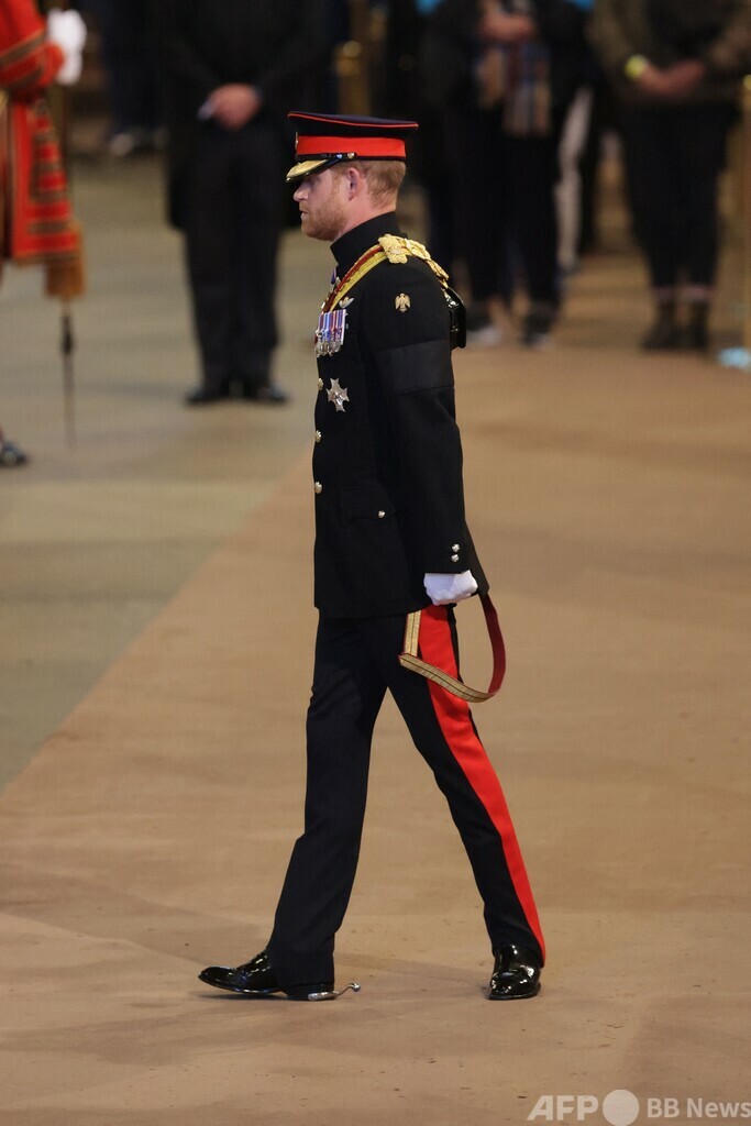 英女王の孫8人、ひつぎ囲む ヘンリー王子は軍服着用