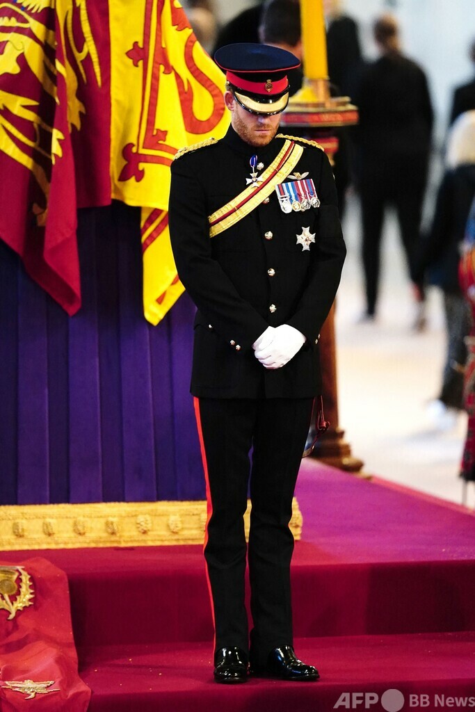 英女王の孫8人、ひつぎ囲む ヘンリー王子は軍服着用