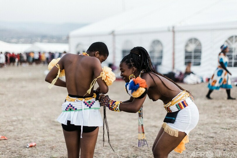 若い女性が舞うズールー人の伝統儀式、新たな王が祝う 南ア