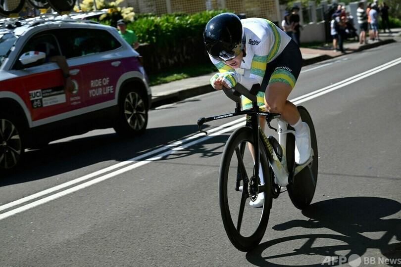 世界選手権はこの日が大会初日で、今年は豪シドニーから80キロ南に位置する港町ウーロンゴン(Wollongong)で25日まで開催される。なお、今回のタイムトライアルは世界選手権では初めて男女とも同じコース、同じ距離(34.2キロ)を走った。(c)AFP