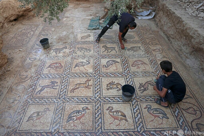 【9月19日 AFP】パレスチナ自治区ガザ地区(Gaza Strip)中部でこのほど、5~7世紀ごろのビザンツ(Byzantine)帝国時代のモザイク画が公開された。自分の畑を耕していた農家が発見したという。