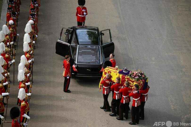 ひつぎの後にはチャールズ国王(King Charles III)をはじめとする英王族、英連邦(Commonwealth)加盟56か国の軍から派遣された部隊を含む行列が続いた。