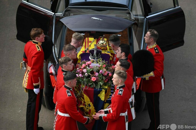 ひつぎの後にはチャールズ国王(King Charles III)をはじめとする英王族、英連邦(Commonwealth)加盟56か国の軍から派遣された部隊を含む行列が続いた。