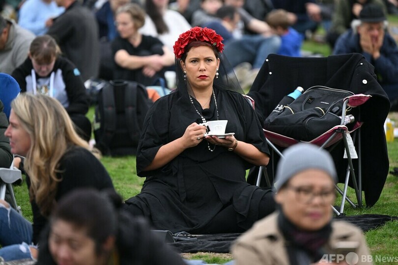 【9月19日 AFP】英首都ロンドンで19日、エリザベス女王(Queen Elizabeth II)の国葬が執り行われるのを前に、葬儀の模様が巨大スクリーンで放映される同市中心部のハイドパーク(Hyde Park)には、女王を追悼する多数の市民が集まっている。