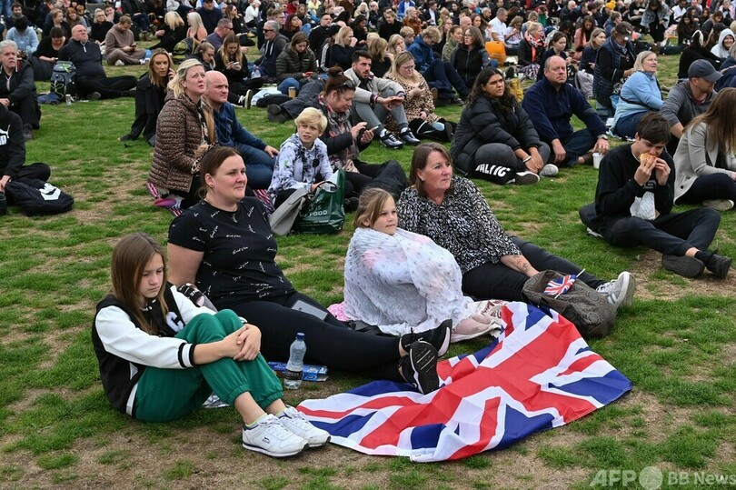 【9月19日 AFP】英首都ロンドンで19日、エリザベス女王(Queen Elizabeth II)の国葬が執り行われるのを前に、葬儀の模様が巨大スクリーンで放映される同市中心部のハイドパーク(Hyde Park)には、女王を追悼する多数の市民が集まっている。