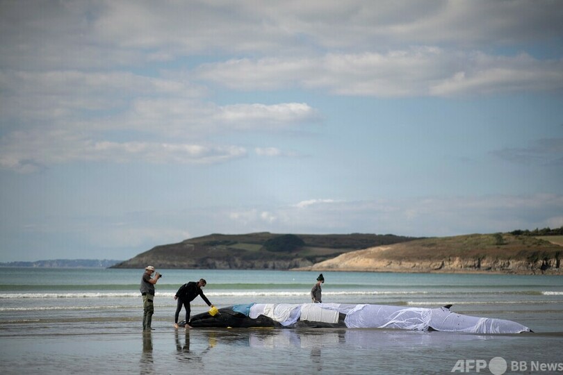 【今日の1枚】「波よ、連れて帰って」仏西部の浜にナガスクジラ