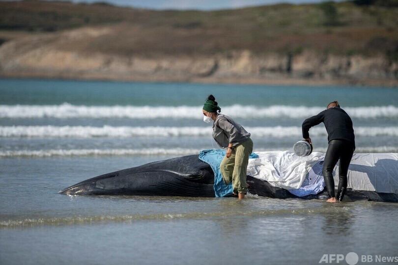 【今日の1枚】「波よ、連れて帰って」仏西部の浜にナガスクジラ