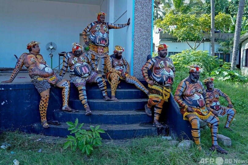 ニュース ライフ 今日の1枚 【今日の1枚】こわもてタイガー、中身はおじさん インド 2022年9月26日 12:15 発信地:コチ/インド [ インド アジア・オセアニア ] このニュースをシェア インド南部コチで、恒例の収穫祭「オナム」の最終日に、パフォーマンスの出番を待つ、トラに扮(ふん)したダンサーたち(2022年9月15日撮影)。(c)Arun CHANDRABOSE / AFP 【9月26日 AFP】インド南部コチ(Kochi)で、恒例の収穫祭「オナム(Onam)」の最終日に、パフォーマンスの出番を待つ、トラに扮(ふん)したダンサーたち。(c)AFP ライフ 一覧へ> メディア・報道関係・法人の方向け 写真・動画 購入のお問合せ>