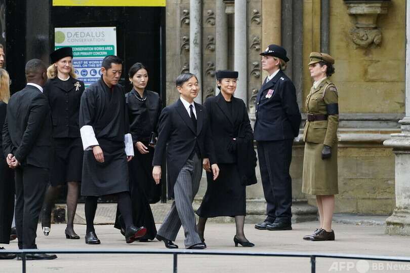 ニュース ライフ 両陛下、英首都で弔問記帳 女王を追悼 2022年9月20日 18:37 発信地:ロンドン/英国 [ 英国 ヨーロッパ 日本 アジア・オセアニア ] このニュースをシェア ‹ › ❮ 5/6 ❯ 英ロンドンのウェストミンスター寺院で執り行われた、エリザベス女王の国葬に参列された天皇、皇后両陛下(2022年9月19日撮影)。(c)James Manning / POOL / AFP 画像作成中 ! 【9月20日 AFP】天皇、皇后両陛下は19日、英国のエリザベス女王(Queen Elizabeth II)の国葬に参列するため訪問した首都ロンドンで、女王を追悼して弔問記帳を行われた。(c)AFP ライフ 一覧へ> メディア・報道関係・法人の方向け 写真・動画 購入のお問合せ>