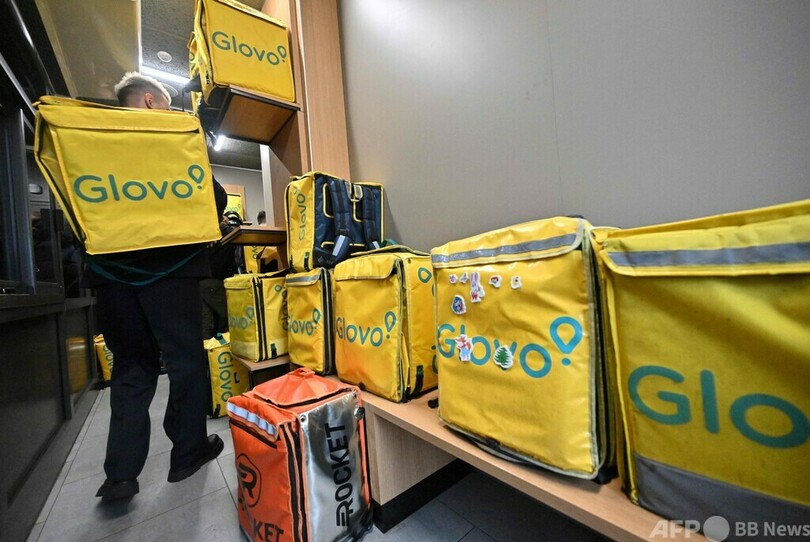 AFP取材班によると、キーウにあるマクドナルドの店舗前には、注文商品を受け取る配達員が列をつくっていた。