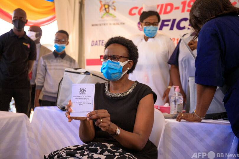 ウガンダのジェーン・ルース・アチェン(Jane Ruth Aceng)保健相はAFPに、隣国コンゴ民主共和国との国境の税関職員を含む最前線の労働者へのワクチン接種を開始したと説明した。(c)AFP/Grace MATSIKO