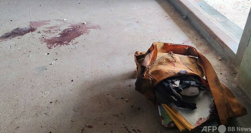 軍は、反政府勢力が民間人を人間の盾として使っていると非難し、村から地雷と爆発物を押収したと説明。だが自身の安全を理由に匿名でAFPの取材に応じた住民は、同地域に戦闘員がいるとの軍の主張を否定し、「彼らはただ学校を攻撃した。誰かが攻撃してきたために反撃したと言っているが、事実ではない」と証言。軍は遺体の一部を運び出し、子どもや教師らを拘束したと語った。(c)AFP