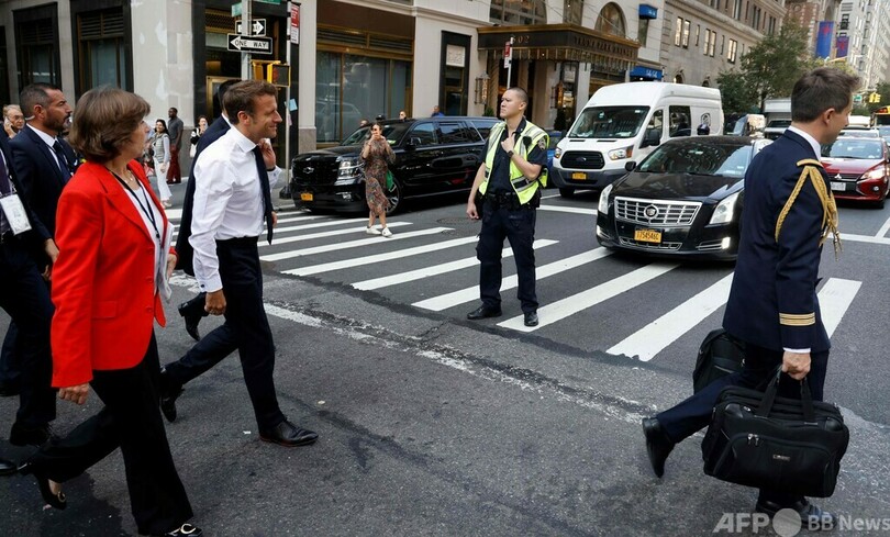 【9月22日 AFP】フランスのエマニュエル・マクロン(Emmanuel Macron)大統領が21日、米ニューヨークのパーク街(Park Avenue、オフィス街)をさっそうと歩く姿が見られた。