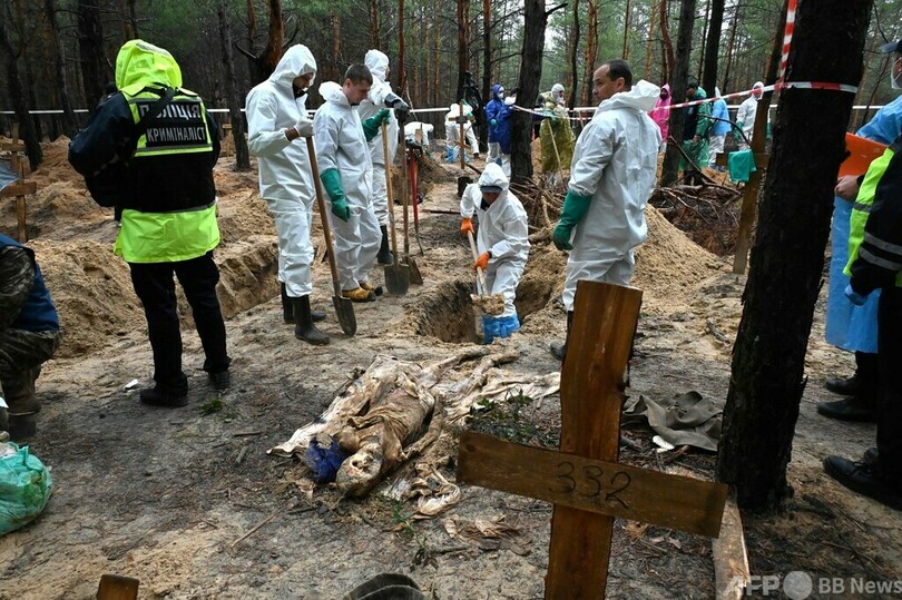 【9月24日 AFP】ウクライナ東部ハルキウ(Kharkiv)州のオレグ・シネグボウ(Oleg Synegubov)州知事は23日、ウクライナ軍がロシア軍から奪還した同州イジューム(Izyum)郊外の集団墓地から遺体436体が掘り起こされ、うち30体に「拷問の痕」があったと発表した。