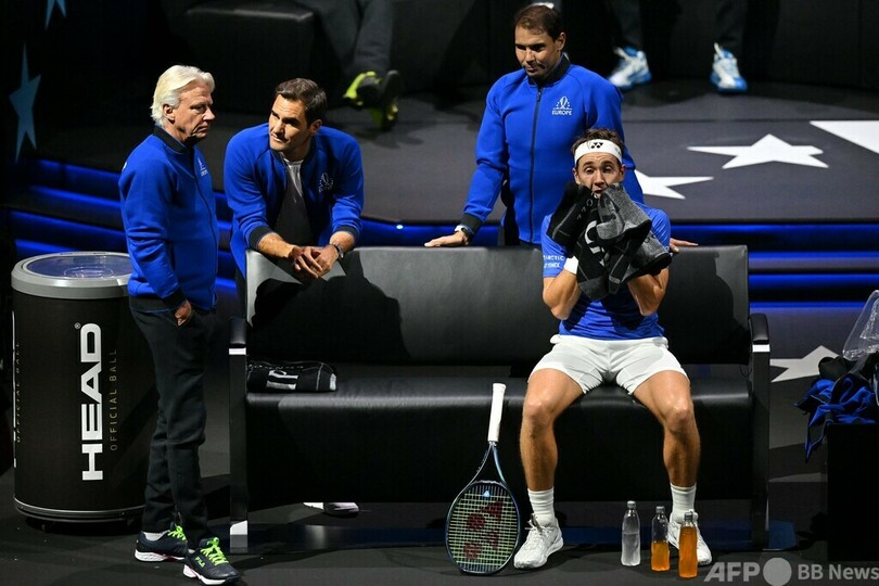 【9月24日 AFP】(更新)男子テニスの欧州チームとワールドチームの対抗戦、レーバー・カップ(Laver Cup 2022)は23日、英ロンドンで初日が行われ、今大会限りで引退するロジャー・フェデラー(Roger Federer、スイス)が、盟友ラファエル・ナダル(Rafael Nadal、スペイン)とのダブルスで現役最後の試合に臨み、その歴史的なキャリアに幕を下ろした。試合後には涙を流した。