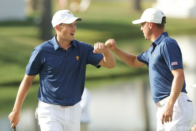 第2試合では、メジャー3勝のジョーダン・スピース(Jordan Spieth)と、この会場で2017年にメジャー初優勝を飾っているジャスティン・トーマス(Justin Thomas)のペアが、松山英樹(Hideki Matsuyama)/テイラー・ペンドリス(Taylor Pendrith、カナダ)組に4アンド3で勝利し、プレジテンツ・カップ1大会で4戦4勝を記録した史上3組目のペアになった。9番でトーマスが約3メートルのバーディーパットを沈めてリードを広げると、15番でスピースが約5.7メートルの距離からチップインバーディーを決めて勝利を確定させた。