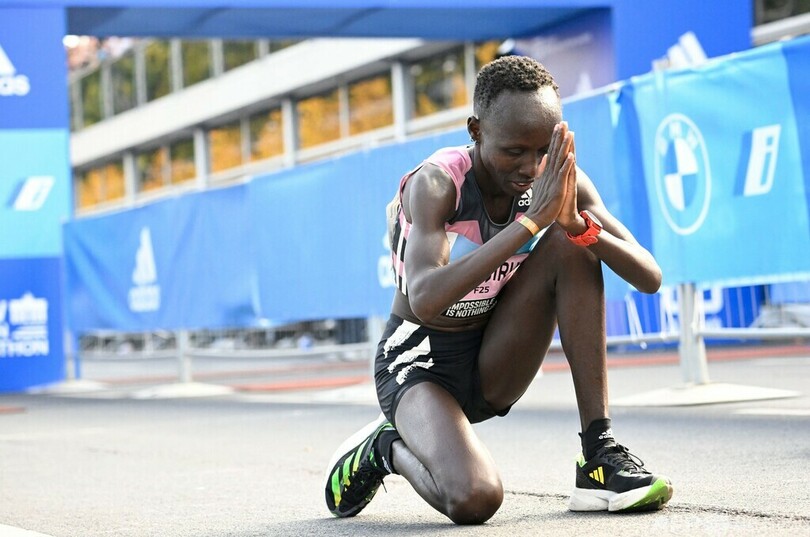 その後、わずかにペースを落とした37歳のキプチョゲだったが、踏ん張って2018年大会でマークした自身の最速タイムを上回った。