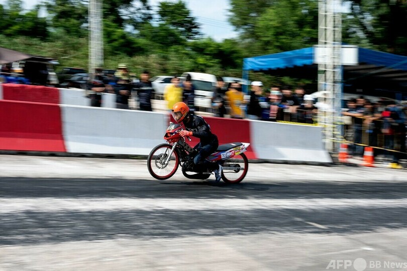【9月30日 AFP】アナワット・ドゥアンダーラーさん(19)は無駄な装備を外したバイクにまたがり、前方を見据えた。コンクリートの路面からかげろうが立ち上る。エンジンをふかすと後輪が激しく回転し、タイヤがきしむ音を残して急発進した。