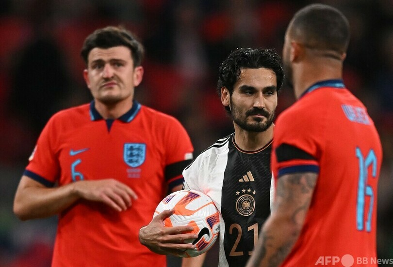 ウェンブリー・スタジアム(Wembley Stadium)で行われた試合は52分、ジャマル・ムシアラ(Jamal Musiala)にボールを奪われたイングランドのハリー・マグワイア(Harry Maguire)がムシアラを倒すと、これで得たPKをイルカイ・ギュンドアン(Ilkay Guendogan)が決めてドイツが先制。67分には再びマグワイアがボールを失ったところから、カイ・ハヴァーツ(Kai Havertz)が追加点を挙げた。