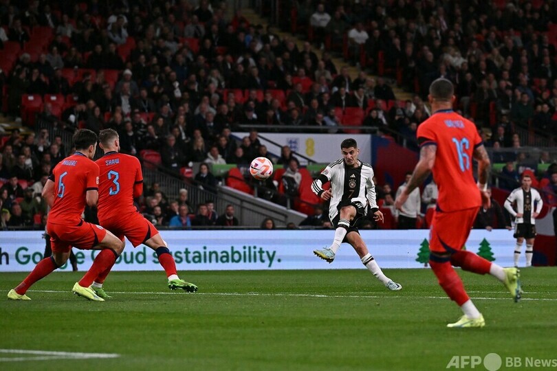 ウェンブリー・スタジアム(Wembley Stadium)で行われた試合は52分、ジャマル・ムシアラ(Jamal Musiala)にボールを奪われたイングランドのハリー・マグワイア(Harry Maguire)がムシアラを倒すと、これで得たPKをイルカイ・ギュンドアン(Ilkay Guendogan)が決めてドイツが先制。67分には再びマグワイアがボールを失ったところから、カイ・ハヴァーツ(Kai Havertz)が追加点を挙げた。