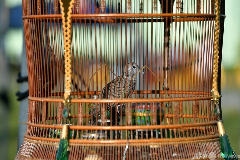 【10月2日 AFP】タイ南部ナラティワット(Narathiwat)県で行われた鳥の歌声コンテストで、会場に並べられた鳥の入った鳥籠。この毎年恒例のコンテストに、タイの他、マレーシア、シンガポールから約1500羽の鳥が出場した。(c)AFP