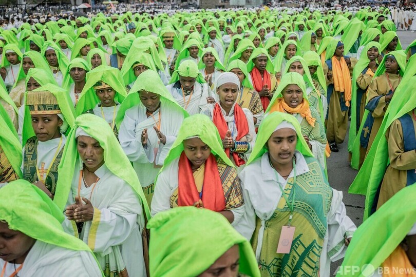 【今日の1枚】「真の十字架」祝い、鮮やかコーラス隊 エチオピア