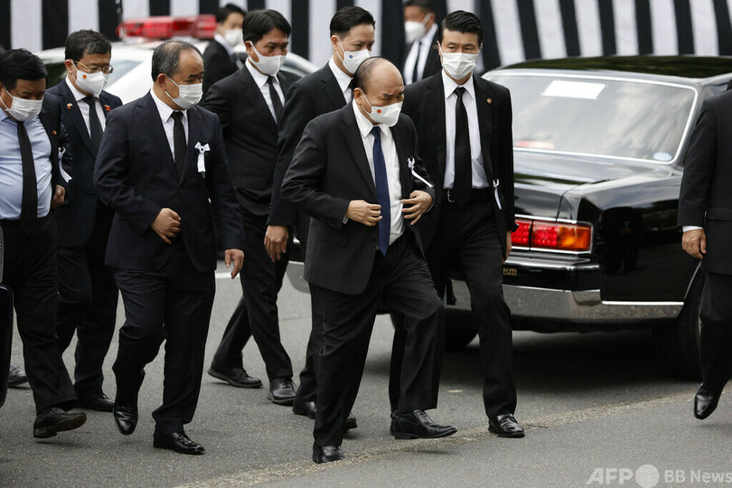 ニュース 政治・経済 安倍氏国葬、皇族や内外要人が参列 2022年9月27日 23:24 発信地:東京 [ 日本 アジア・オセアニア ] このニュースをシェア ‹ › ❮ 24/28 ❯ 東京・日本武道館で執り行われた安倍晋三元首相の国葬に参列したベトナムのグエン・スアン・フック国家主席(中央、2022年9月27日撮影)。(c)Kiyoshi Ota / POOL / AFP 画像作成中 ! 【9月27日 AFP】安倍晋三(Shinzo Abe)元首相の国葬(国葬儀)が27日、東京・日本武道館(Nippon Budokan)で執り行われた。皇族や国内外の要人ら、参列者の写真をまとめた。(c)AFP 政治・経済 一覧へ> メディア・報道関係・法人の方向け 写真・動画 購入のお問合せ>
