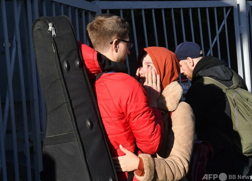 ニュース 戦争・紛争 ウクライナ危機 戦場に向かう予備兵、涙の見送り ロシア 2022年9月28日 1:55 発信地:ロシア [ ロシア ウクライナ ロシア・CIS ] このニュースをシェア ‹ › ❮ 5/16 ❯ ロシア・サンクトペテルブルクで、部分的動員令により招集され、家族や友人に別れを告げる予備兵(2022年9月27日撮影)。(c)AFP 画像作成中 ! 【9月28日 AFP】ウクライナ侵攻のための部分的動員令が出されたロシアでは、招集された予備兵たちが家族や友人らに別れを告げる光景が、各地で繰り広げられている。(c)AFP 特集:ウクライナ危機 ロシアがウクライナに侵攻、世界は東西冷戦終結後最大の危機に直面している。 戦争・紛争 一覧へ> メディア・報道関係・法人の方向け 写真・動画 購入のお問合せ>