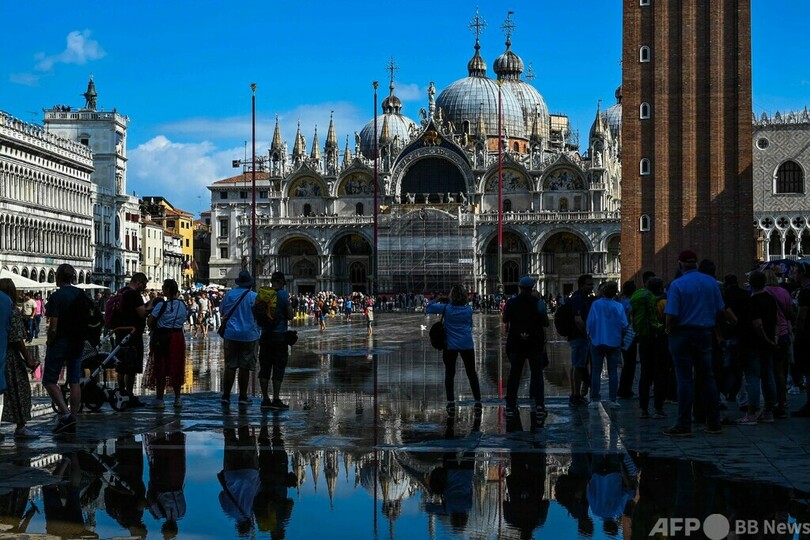 【10月1日 AFP】イタリア・ベネチア(Venice)のサンマルコ広場(St Mark's Square)が今週、「アクアアルタ」と呼ばれる高潮の影響で冠水した。