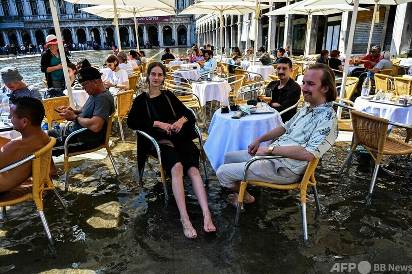 【10月1日 AFP】イタリア・ベネチア(Venice)のサンマルコ広場(St Mark's Square)が今週、「アクアアルタ」と呼ばれる高潮の影響で冠水した。
