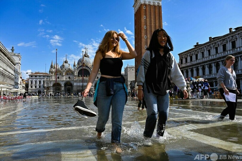 【10月1日 AFP】イタリア・ベネチア(Venice)のサンマルコ広場(St Mark's Square)が今週、「アクアアルタ」と呼ばれる高潮の影響で冠水した。