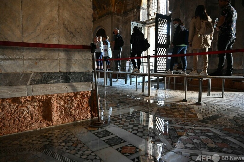 【10月1日 AFP】イタリア・ベネチア(Venice)のサンマルコ広場(St Mark's Square)が今週、「アクアアルタ」と呼ばれる高潮の影響で冠水した。