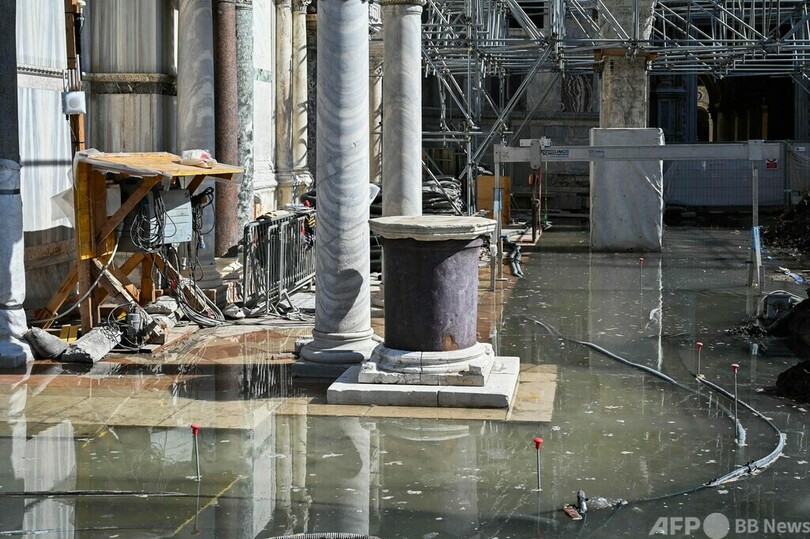 【10月1日 AFP】イタリア・ベネチア(Venice)のサンマルコ広場(St Mark's Square)が今週、「アクアアルタ」と呼ばれる高潮の影響で冠水した。