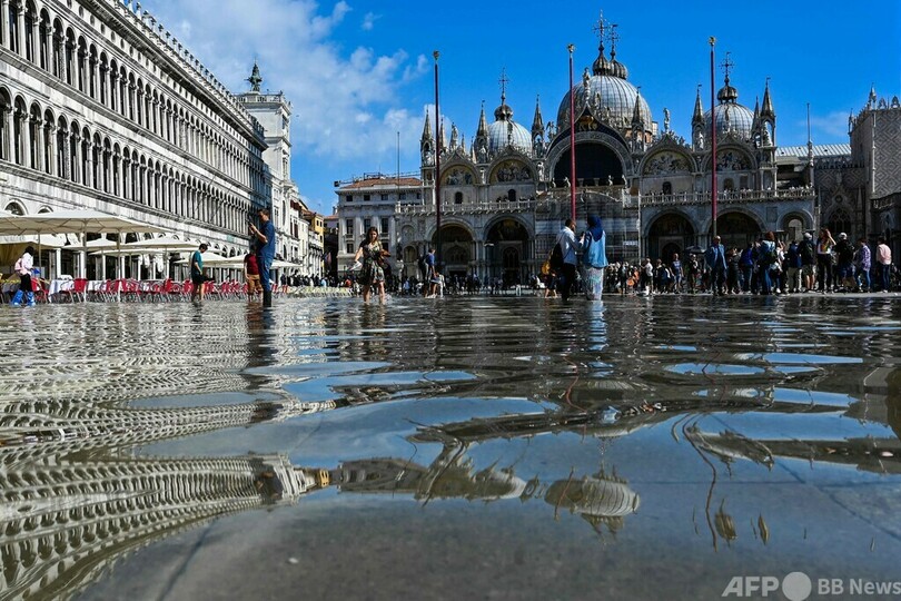 【10月1日 AFP】イタリア・ベネチア(Venice)のサンマルコ広場(St Mark's Square)が今週、「アクアアルタ」と呼ばれる高潮の影響で冠水した。