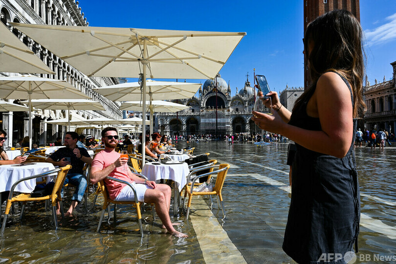 【10月1日 AFP】イタリア・ベネチア(Venice)のサンマルコ広場(St Mark's Square)が今週、「アクアアルタ」と呼ばれる高潮の影響で冠水した。