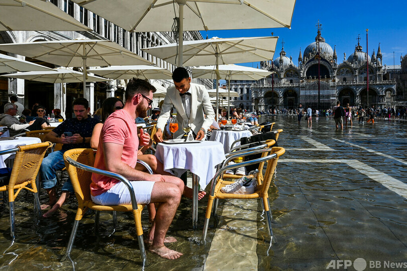 【10月1日 AFP】イタリア・ベネチア(Venice)のサンマルコ広場(St Mark's Square)が今週、「アクアアルタ」と呼ばれる高潮の影響で冠水した。