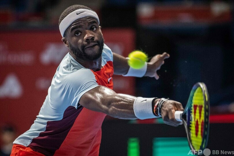 グランドスラム初の4強入りを果たした前月の全米オープンで、ラファエル・ナダル(Rafael Nadal、スペイン)を撃破し脚光を浴びた24歳のティアフォーは、第8シードのダニエル・エヴァンス(Daniel Evans、英国)を6-3、3-6、7-6(7-4)で下したミオミル・ケツマノビッチ(Miomir Kecmanovic、セルビア)と準々決勝で顔を合わせる。(c)AFP/Katie Forster