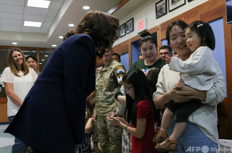 ハリス氏は、非武装地帯の丘にある監視所で米韓両軍兵士の説明を受けながら、双眼鏡で北朝鮮側を観察。「とても近い」との感想を漏らした。